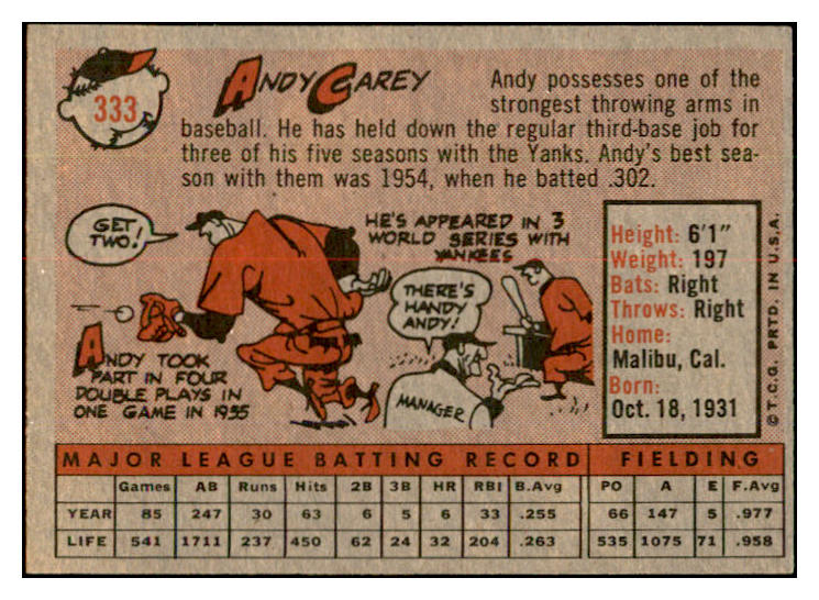 1958 Topps Baseball #333 Andy Carey Yankees EX-MT 535928