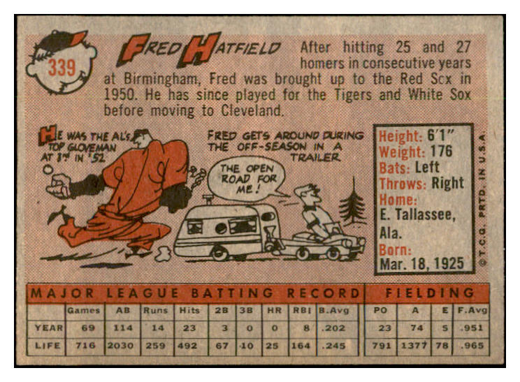 1958 Topps Baseball #339 Fred Hatfield Indians EX-MT 535936
