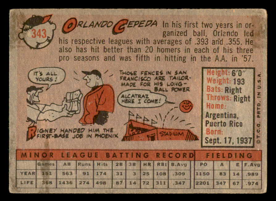 1958 Topps Baseball #343 Orlando Cepeda Giants VG 540146