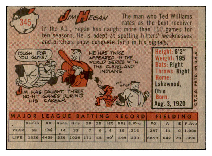 1958 Topps Baseball #345 Jim Hegan Tigers EX-MT 535940