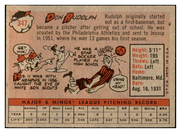 1958 Topps Baseball #347 Don Rudolph White Sox EX-MT 535943