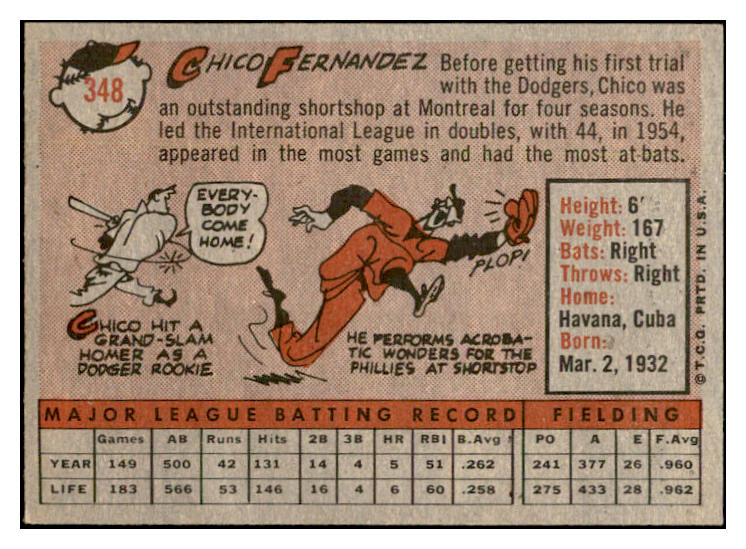 1958 Topps Baseball #348 Chico Fernandez Phillies EX-MT 535944
