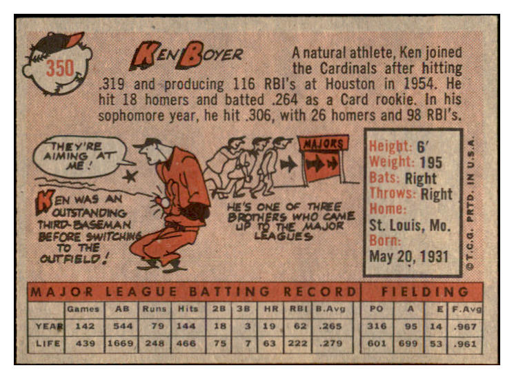 1958 Topps Baseball #350 Ken Boyer Cardinals EX-MT 532747