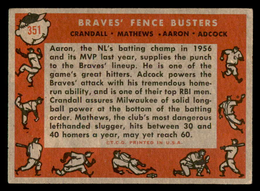 1958 Topps Baseball #351 Hank Aaron Eddie Mathews VG-EX 538836