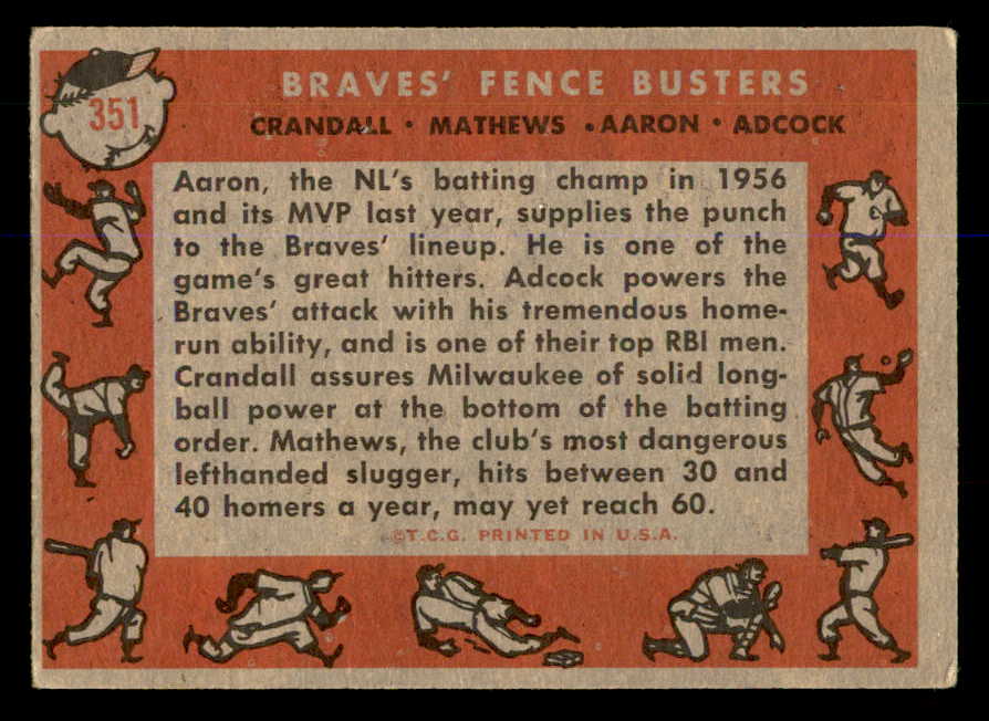 1958 Topps Baseball #351 Hank Aaron Eddie Mathews VG-EX 548057