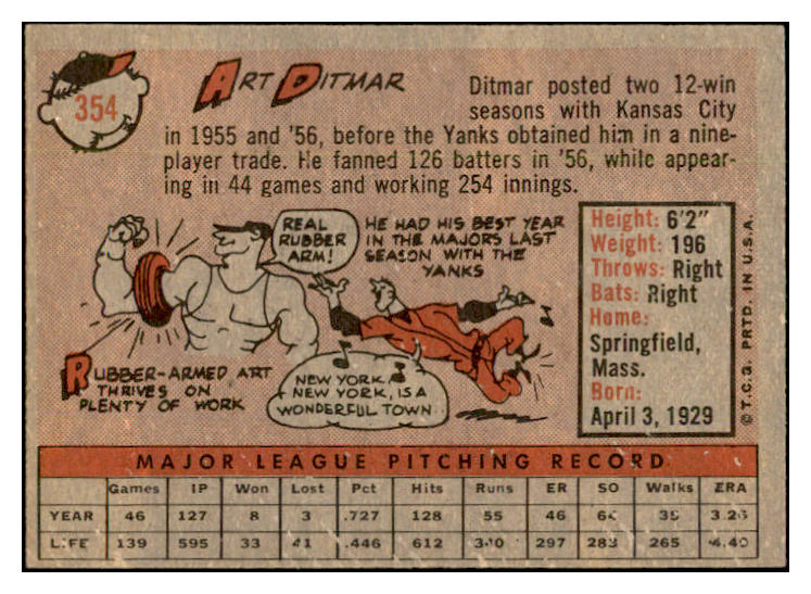 1958 Topps Baseball #354 Art Ditmar Yankees EX-MT 535950
