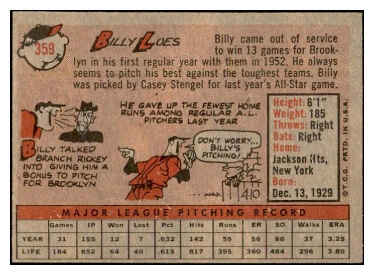 1958 Topps Baseball #359 Billy Loes Orioles EX-MT 535959