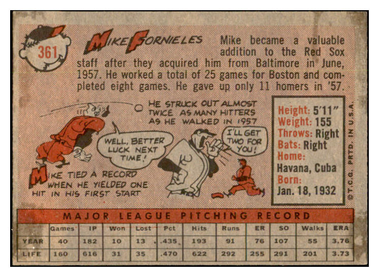 1958 Topps Baseball #361 Mike Fornieles Red Sox EX-MT 535961