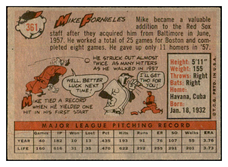 1958 Topps Baseball #361 Mike Fornieles Red Sox EX-MT 535962