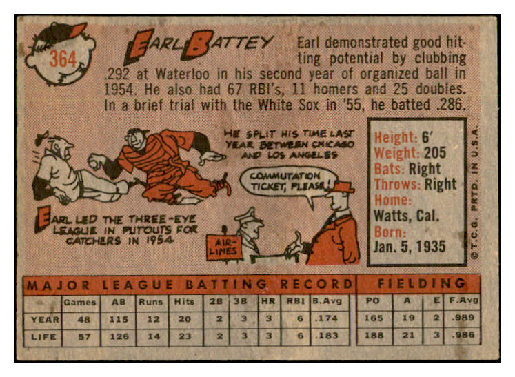 1958 Topps Baseball #364 Earl Battey White Sox EX-MT 535966