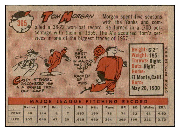 1958 Topps Baseball #365 Tom Morgan Tigers EX-MT 535967