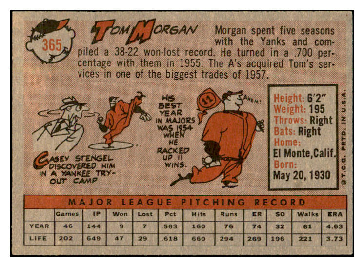 1958 Topps Baseball #365 Tom Morgan Tigers EX-MT 535968
