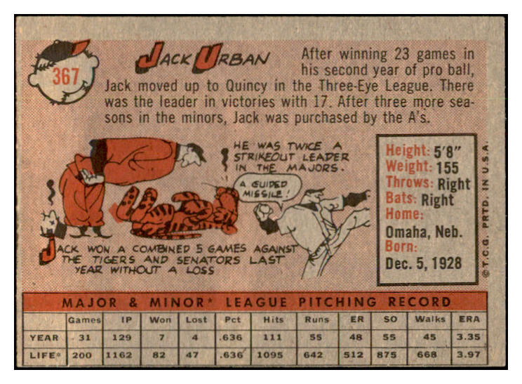 1958 Topps Baseball #367 Jack Urban A's EX-MT 535971