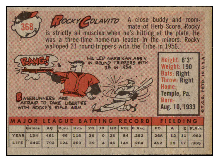 1958 Topps Baseball #368 Rocky Colavito Indians EX-MT 523843