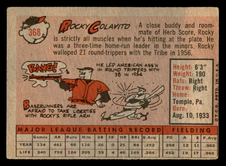 1958 Topps Baseball #368 Rocky Colavito Indians VG-EX 540152