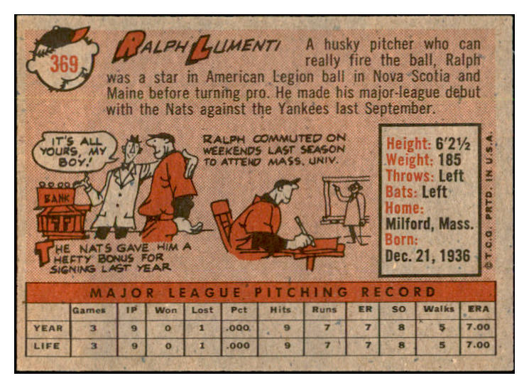 1958 Topps Baseball #369 Ralph Lumenti Senators EX-MT 535972