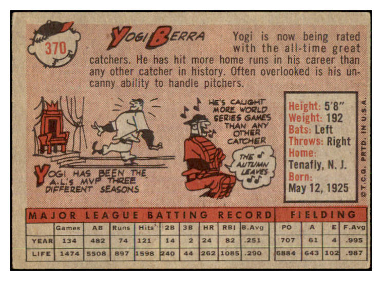 1958 Topps Baseball #370 Yogi Berra Yankees EX 442144