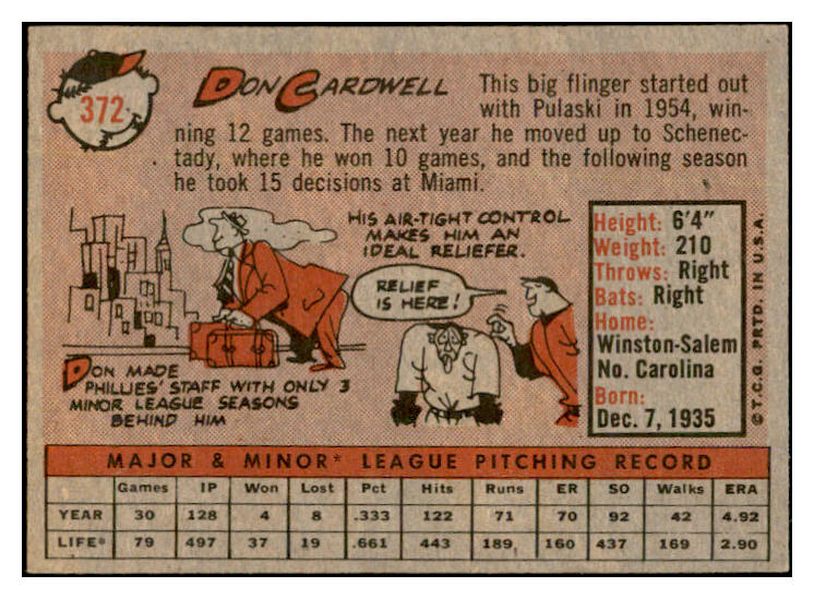 1958 Topps Baseball #372 Don Cardwell Phillies EX-MT 535977