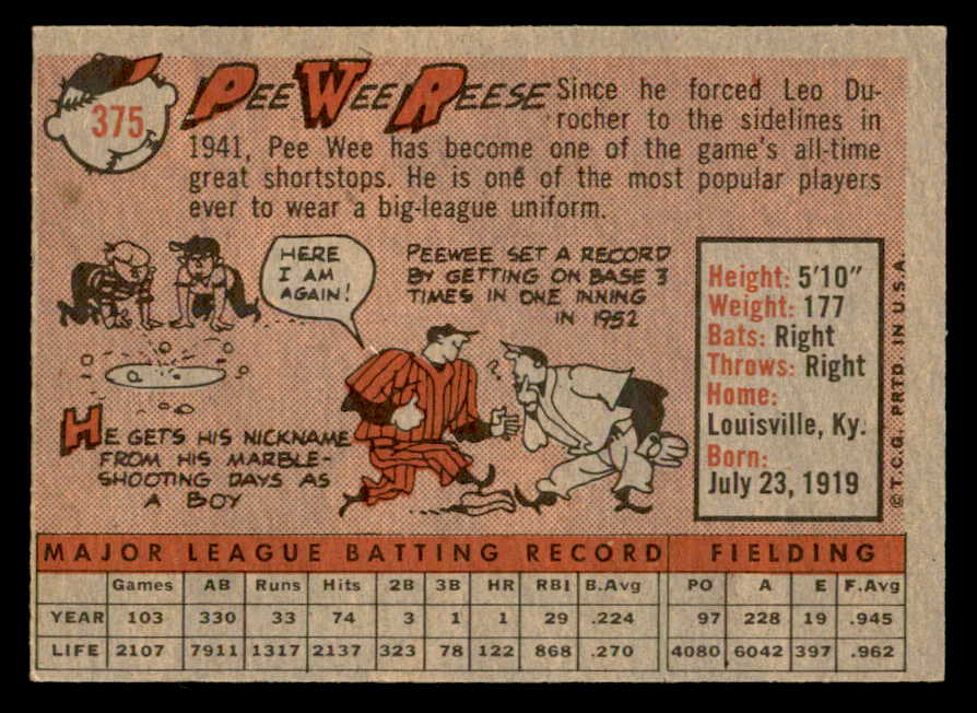 1958 Topps Baseball #375 Pee Wee Reese Dodgers EX+/EX-MT 539320