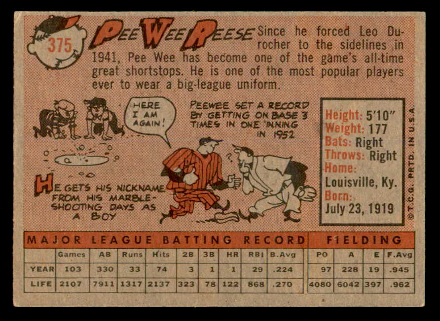 1958 Topps Baseball #375 Pee Wee Reese Dodgers EX+/EX-MT 539321