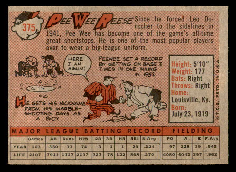 1958 Topps Baseball #375 Pee Wee Reese Dodgers EX-MT 539322