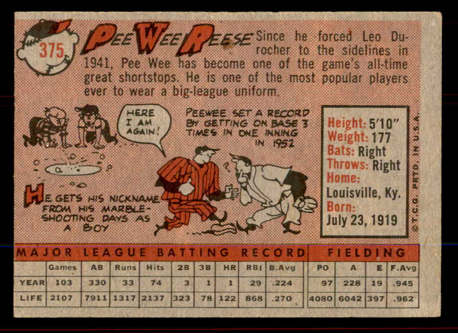 1958 Topps Baseball #375 Pee Wee Reese Dodgers VG-EX 545662