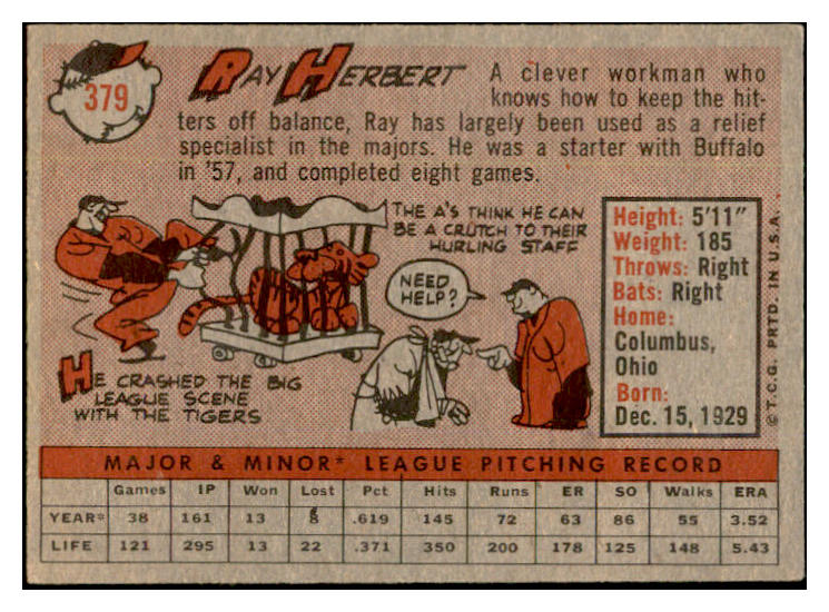 1958 Topps Baseball #379 Ray Herbert A's EX-MT 535984