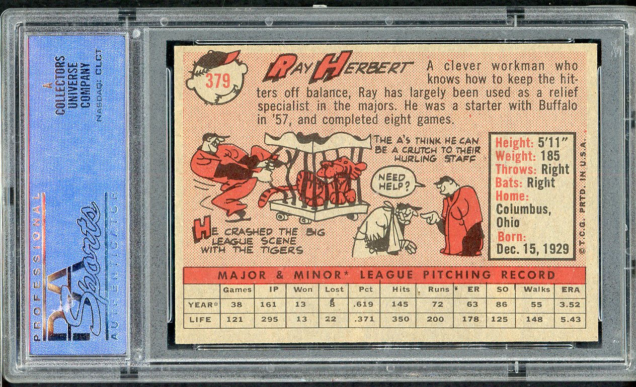 1958 Topps Baseball #379 Ray Herbert A's PSA 8 NM/MT 547462