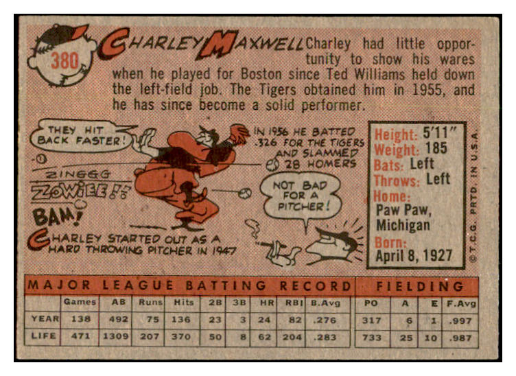 1958 Topps Baseball #380 Charley Maxwell Tigers EX-MT 535985