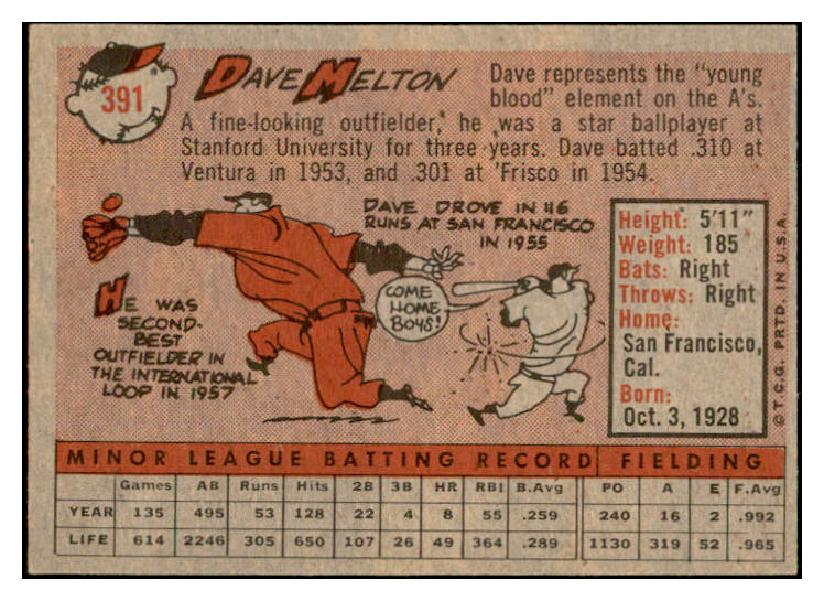 1958 Topps Baseball #391 Dave Melton A's EX-MT 536000