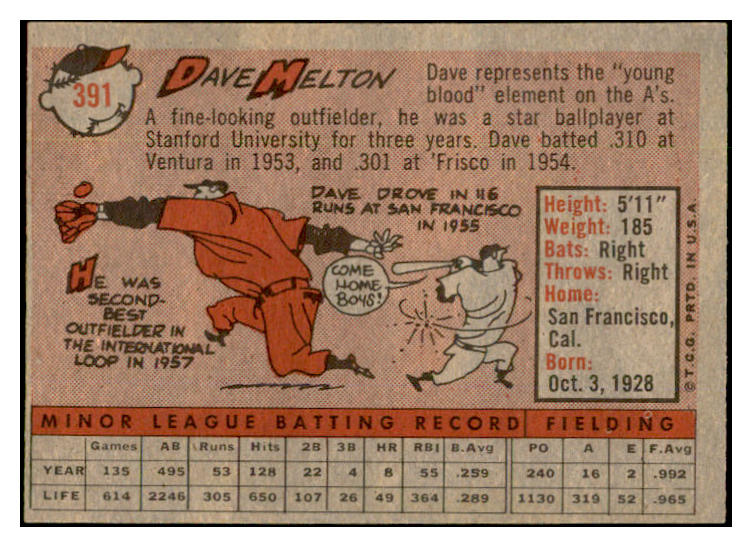1958 Topps Baseball #391 Dave Melton A's EX-MT 536001