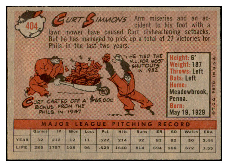 1958 Topps Baseball #404 Curt Simmons Phillies EX-MT 536016
