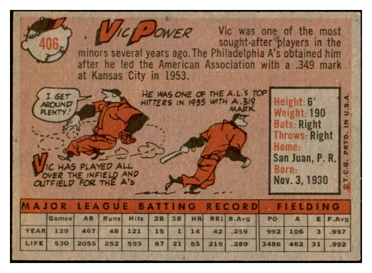 1958 Topps Baseball #406 Vic Power A's EX-MT 536020