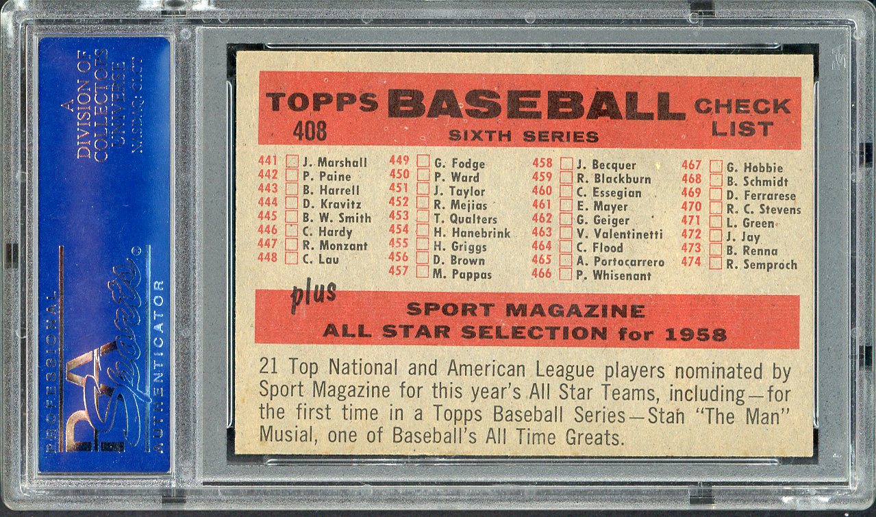 1958 Topps Baseball #408 Baltimore Orioles Team PSA 5 EX Numerical 547299