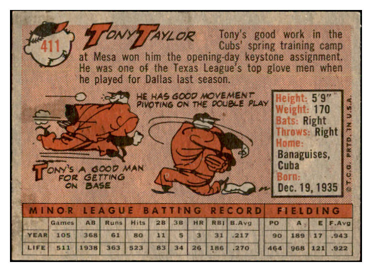 1958 Topps Baseball #411 Tony Taylor Cubs EX-MT 536027