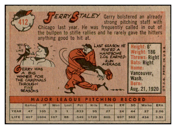 1958 Topps Baseball #412 Jerry Staley White Sox EX-MT 536029