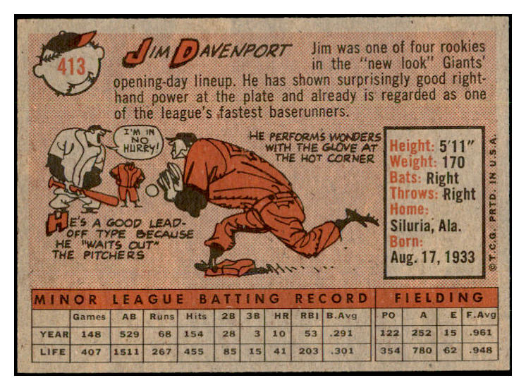 1958 Topps Baseball #413 Jim Davenport Giants EX-MT 536030
