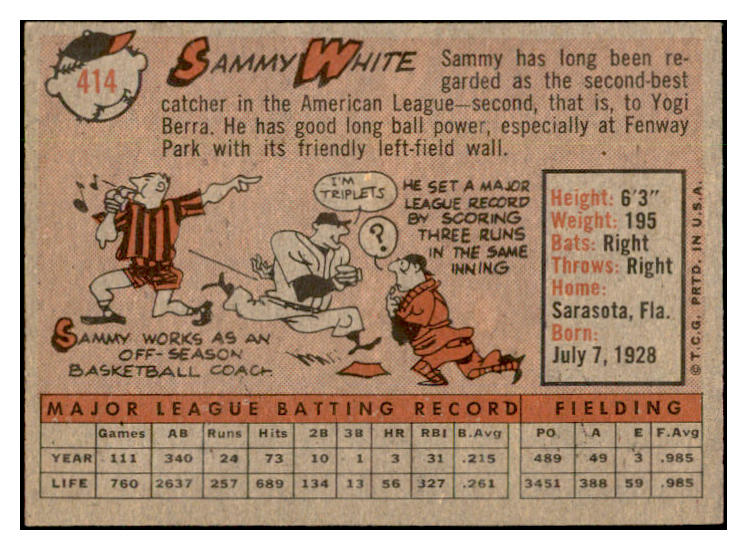 1958 Topps Baseball #414 Sammy White Red Sox EX-MT 536032