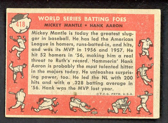 1958 Topps Baseball #418 Mickey Mantle Hank Aaron EX 538610
