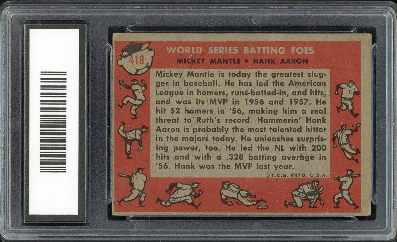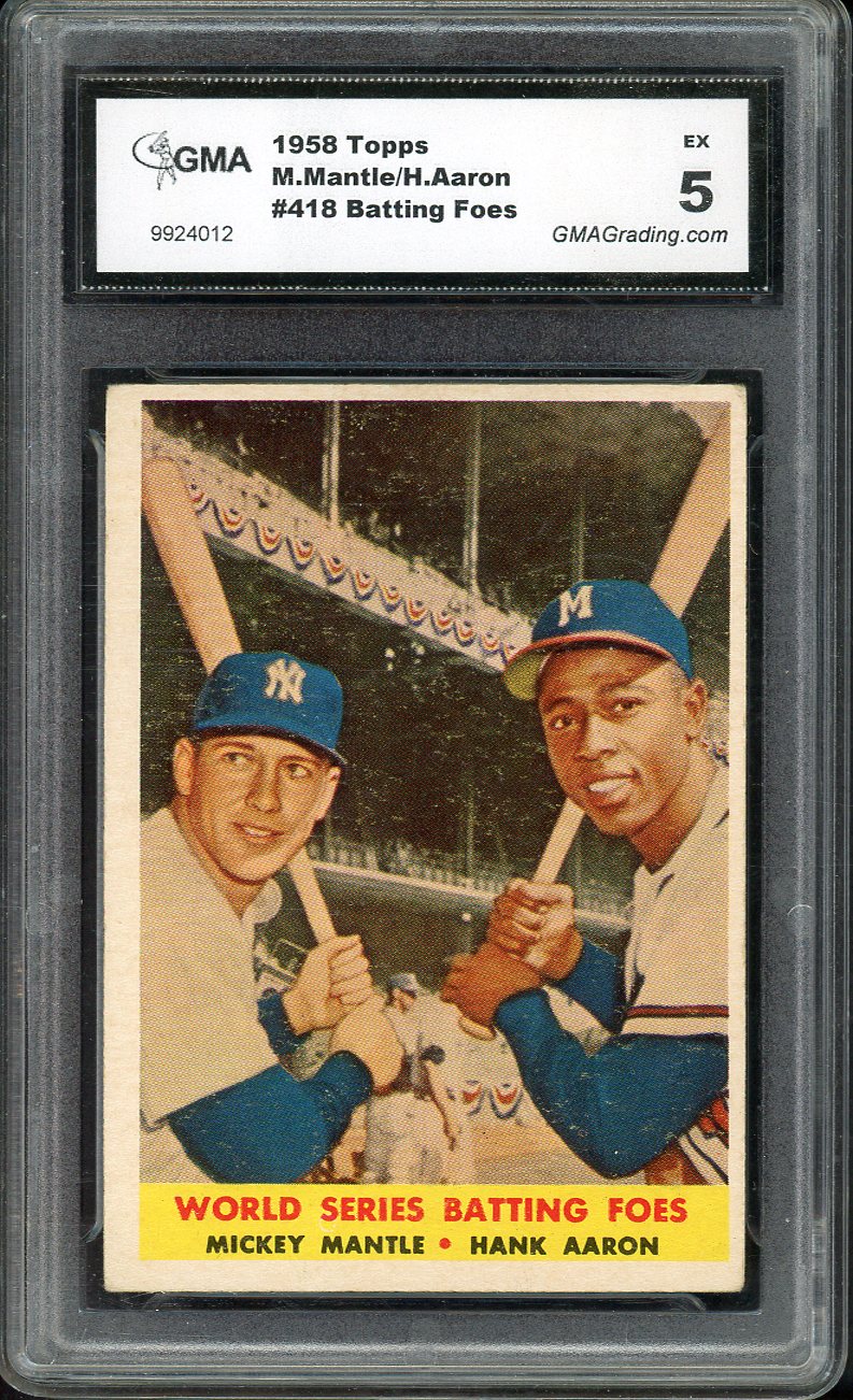 1958 Topps Baseball #418 Mickey Mantle Hank Aaron GMA 5 EX 544734