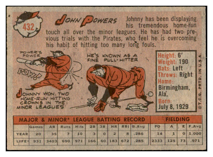 1958 Topps Baseball #432 John Powers Pirates EX-MT 536048