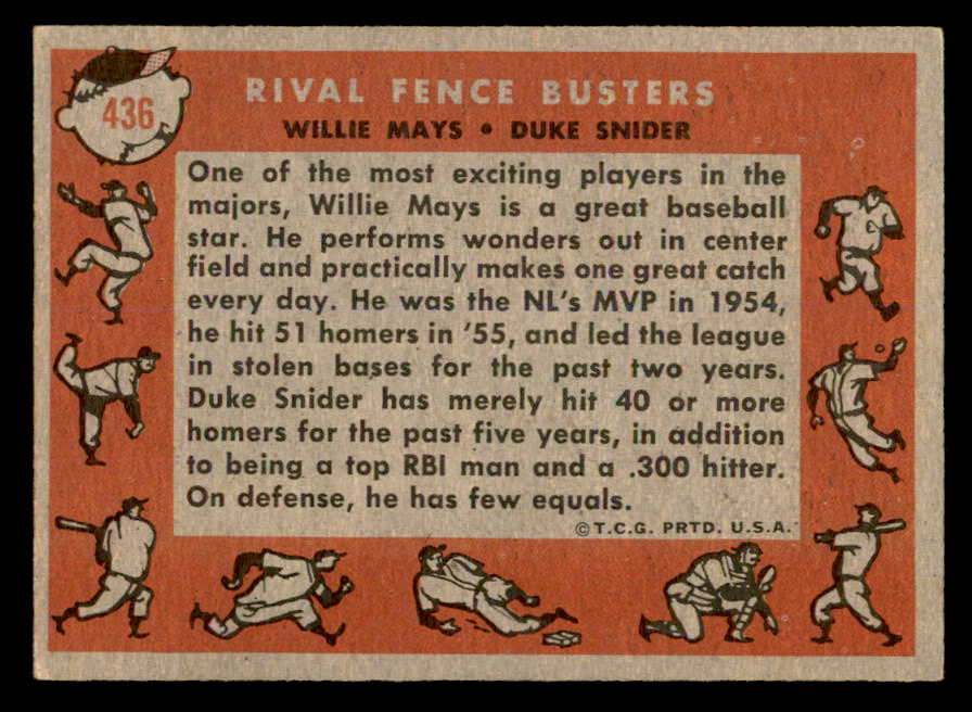 1958 Topps Baseball #436 Willie Mays Duke Snider EX 539316