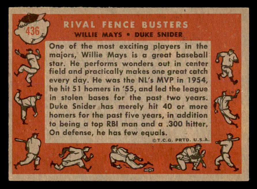 1958 Topps Baseball #436 Willie Mays Duke Snider EX+/EX-MT 539314