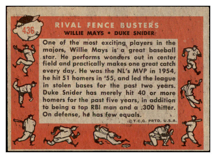 1958 Topps Baseball #436 Willie Mays Duke Snider VG-EX 529019