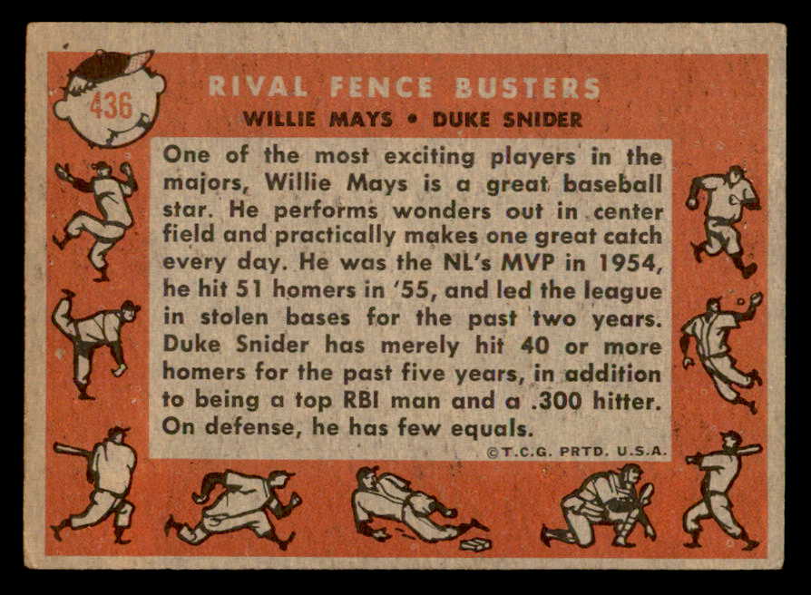 1958 Topps Baseball #436 Willie Mays Duke Snider VG-EX 538827