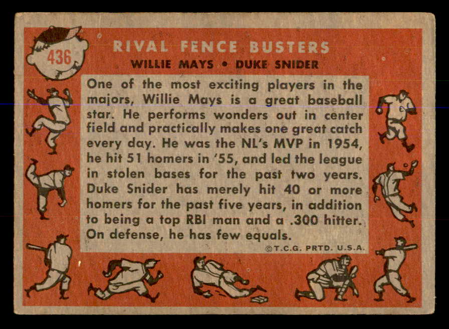 1958 Topps Baseball #436 Willie Mays Duke Snider VG-EX 547806