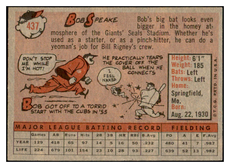 1958 Topps Baseball #437 Bob Speake Giants EX-MT 536056