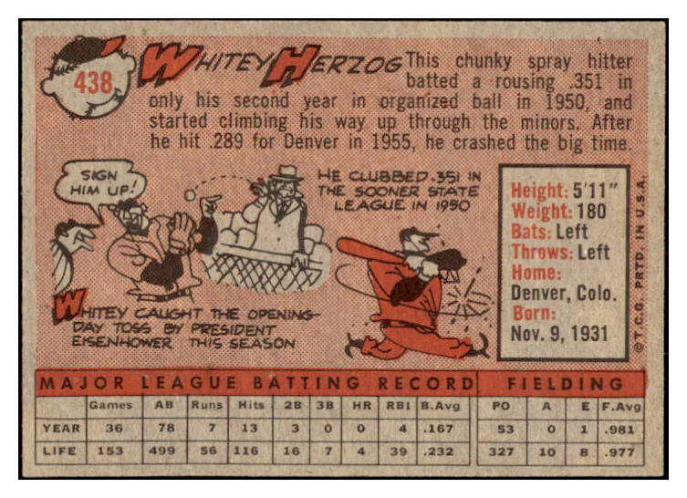 1958 Topps Baseball #438 Whitey Herzog Senators EX-MT 530568