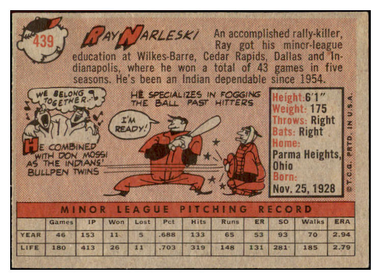 1958 Topps Baseball #439 Ray Narleski Indians EX-MT 530346