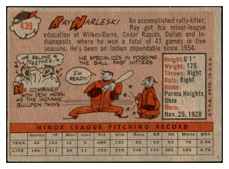 1958 Topps Baseball #439 Ray Narleski Indians EX-MT 536057